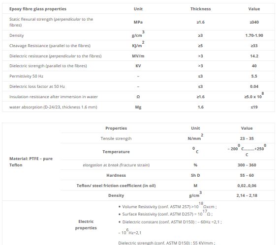 Upon request, we can manufacture other isolating and sealing materials (with or without rubber rings)
