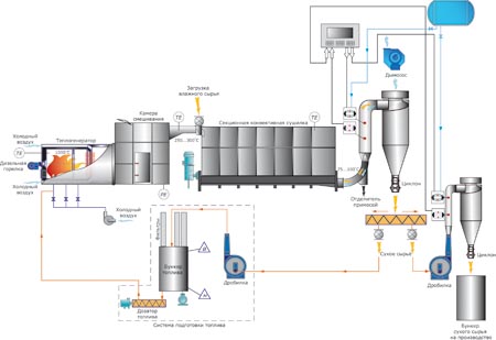 - Construction design of the sectional convection drying plant and the mixing chamber significantly simplifies transportation of equipment to the installation site.