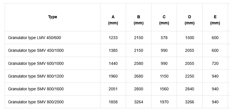 The granulators of SMV series are designed for universal use.