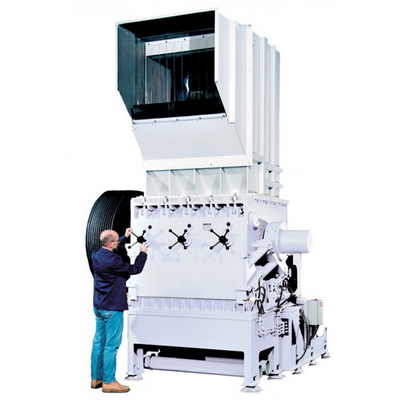 The rotor shaft is housed in stand stock bearings so it is separated from the grinding chamber. This ensures the material to be crushed a safe separation. The granulator SX is different from the other cutting mills by their extremely stable steel construction of the housing design. On request, the mill housing can be equipped with replaceable wear plates.