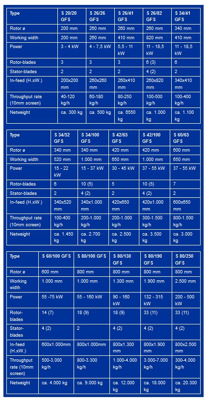 - throughput rate: 40 - 4.000 kg/h (10mm screen)