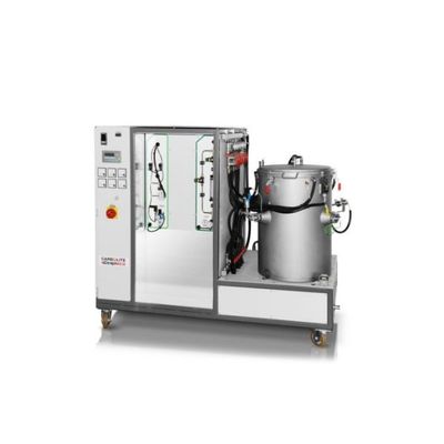 The small overall dimensions and simple operation result in a cost effective system without any performance loss in temperature uniformity or atmospheric quality. Additionally, the cylindrical design is best suited for overpressure heat treatment processes. Upon request, the system can be equipped with a suitable locking device and all necessary equipment for safe overpressure operations up to 100 bar.