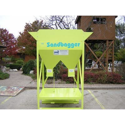 The Gravity Fed 2 Chute is an automated sandbag filling system used to fill two (2) sandbags simultaneously. It requires two (2) people to fill sandbags and one (1) person to operate the front end loader to keep the hopper full. The gravity-fed model will fill 400-500 bags per hour, depending on the material and manpower. The operator simply presses a foot pedal to activate the flow of sand into the bag, then releases the foot pedal to stop the flow. This equipment is self-contained, lightweight, and transportable in a pickup truck bed. A ladder is provided to manually probe the material in the hopper when necessary. Optional towing package available. Made in the USA.
