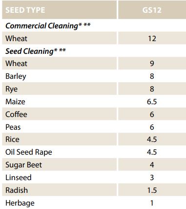 *Capacities given are in tonnes per hour, and are subject to the seed quality, moisture, impurities and quality of separation required. **Capacities stated are for guide use only and actual capacities may be greater or smaller than stated.