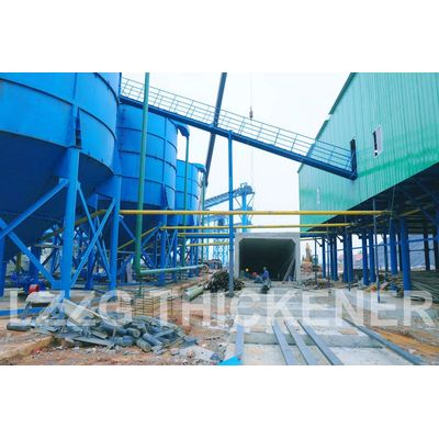 The deep cone sludge thickener is based on the traditional vertical flow sedimentation tank. The structure of the internal feed cylinder is improved, the efficiency of sedimentation is greatly improved, the plane of the sludge thickening tank body is circular, and the suspended solids settle under gravity. In the bottom of the tank, the clarified water is discharged from the overflow weir around the upper end of the tank. The overflow port is provided with a scum filter device and a baffle to ensure the effluent water quality, the underflow concentration is up to 70%, and the treatment capacity is 3-8 times higher than that of the conventional concentrator. Capacity 50t ~ 300t per hour.