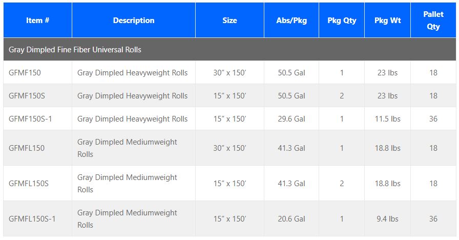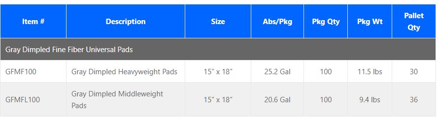 MBT - Model GFMF -Gray Fine Fiber Universal Absorbents
