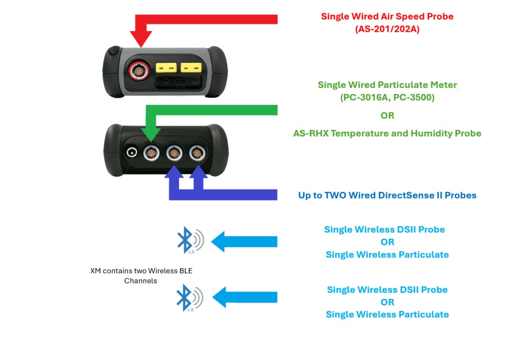 Bluetooth Low Energy for wireless connection to DirectSense II probes and particle meters (as a standard alternative to cabled connection)