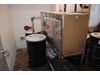 The timer-driven heating element :s activated to liquefy grease, which is then removed by the skimming wheel and deposited into a portable container for recycling.