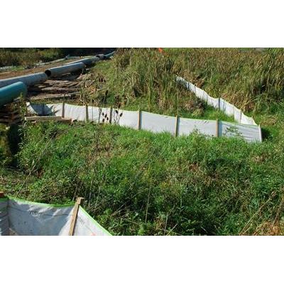 The fabric is a 36” wide, non-woven spun-bond polyester fabric with an internal scrim. The system utilizes wood stakes and a specific method of attachment. The BSRF, when installed as specified, produces a proven system with superior filtering capabilities in slurry conditions.
