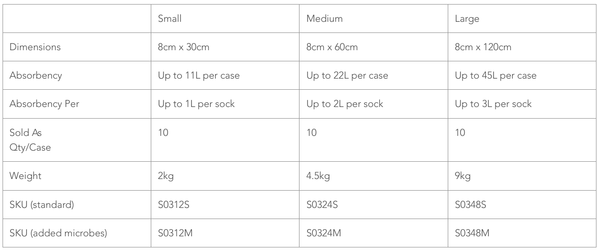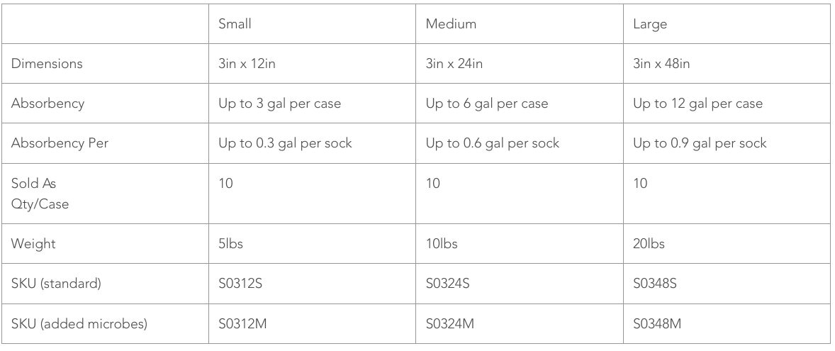 - Socks offer a long surface area that is tear-resistant, high capacity and has fast-wicking filler to quickly soak up oil.