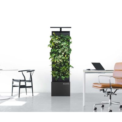 Combining the best of air purifiers, humidifiers, and authentic nature with living plants. Naava Flow is the perfect solution for smaller spaces, such as meeting rooms, phone booths, and home offices. Thanks to its low frame, Naava Flow allows the gaze to move freely across the space, delivering the green lushness of the plants and the effects of fresh air indoors as effectively as the taller models.
