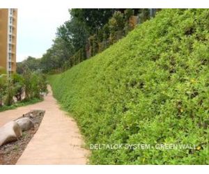Retaining living walls are engineered living structures that are designed to stabilize a slope, while supporting vegetation contained in their structure. They provide the structural strength to resist the lateral forces exerted by angles greater than the natural angle of repose of soil and protects slopes against erosion.