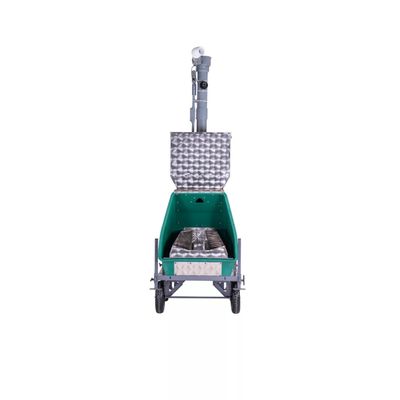 The free-stall cart is a hand cart with stationary legs that can be lowered and raised. The user can pull the GreenFeed system to new locations by hand. Once in a permanent location, the legs are lowered and the unit is anchored for measurements.