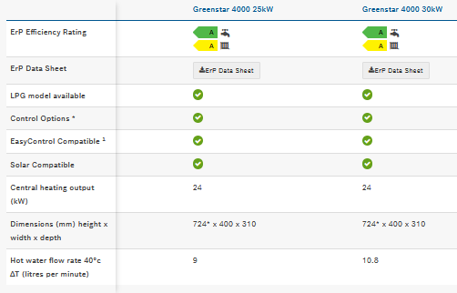 The Greenstar 4000 is perfect for small to medium sized homes with one bathroom, it features a modern new design, an easy to use full colour text display and it’s quiet too. The Greenstar 4000 has a wide power range to meet all of your heating and hot water needs, whilst doing so efficiently.