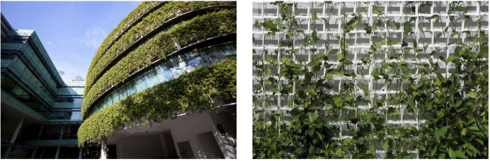 - Improvement of the microclimate by lowering the external heating: at night the vegetation prevents heat loss, while in daylight hours, it absorbs the heat due to perspiration keeping the building cooler.
