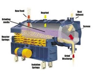 Exceptional grinding performance and energy savings are the result of the Vibra-Drum`s natural frequency design. A sub-resonant, two mass drive and spring system alternately stores and releases grinding power. Once in motion, energy is only needed to move the grinding media as a fluid mass, and to overcome frictional losses. The Vibra-Drum grinding mill can be used for processes other than grinding. It has been used to:
