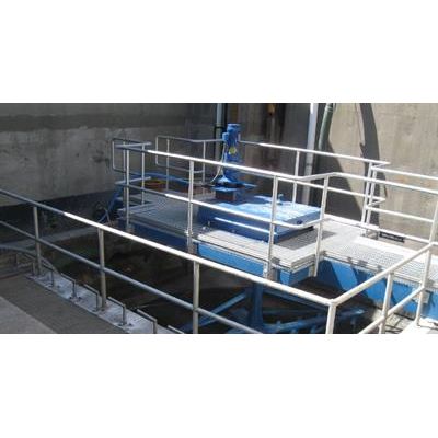 Typically, a grit collector follows sewage screening equipment. The WesTech shaft drive grit collector mechanism is mounted on a walkway which spans a wide shallow tank. This chamber is designed as a constant-level, short-detention settling tank for grit.