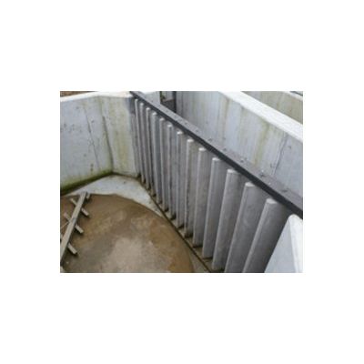 The sewage flow enters the concrete grit settlement chamber via a series of inlet baffles where hydro-separation takes place and grit settles to the bottom. The independently adjustable inlet baffles provide an even flow distribution and uniform velocity across the entire width of the unit.