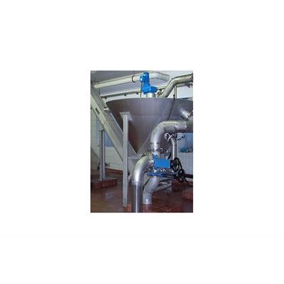 The organic rich wash water is discharge via an actuated valve, the supernatant overflows through the top circular weir. Washed particles settle to the bottom of the settlement trap, and are scraped the centre drop point to within the screw conveyor feed zone.