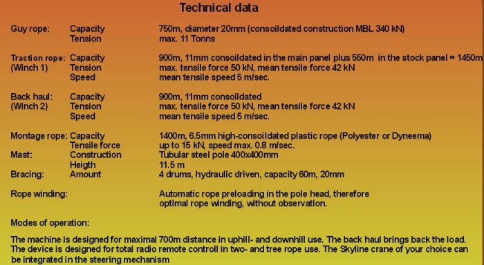 The Grizzly 700 is powerful lika a truck mounted yarder but more compact. He has strong winches with line speed, 700m rage in uphill and downhil use and radio controlled automatic drive function.It is a special construction for difficult conditions (little paths and little space) so that it can always be installed.