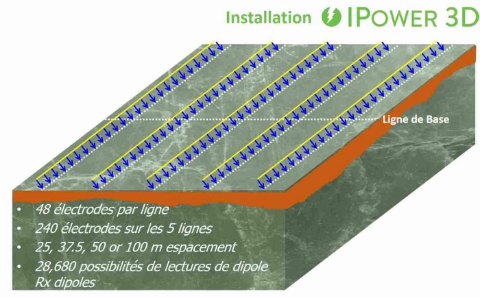 IPower 3D is an innovation in ground induced polarization acquired by Canada’s Premier geophysical company in mineral exploration. Abitibi Geophysics has a culture of innovation and is constantly making significant reinvestments in R & D. We acquire the best geophysical technologies available on the market in addition to developing methods and equipment in-house. IPower-3D ® is a direct result of our innovation projects that improve surface IP surveys. Abitibi Geophysics has developed IPower-3D ® to investigate at depths of more than 600 m and can penetrate the overburden.