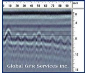 To locate objects such as rebar, conduits and post-tension cables imbedded in concrete a high frequency GPR system is used. The data can be collected in simple line scans to determine the thickness of concrete or in a grid format which will produce a map of any targets located in the concrete. Using this method we can look at virtual slices in the image to determine the depth of the objects and create a 3D map of the image.