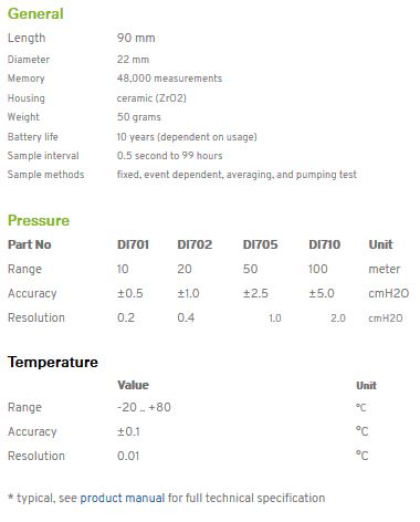 VanEssen Cera-Diver - Model DI701, DI702, DI705, DI710 -Groundwater Monitoring Dataloggers