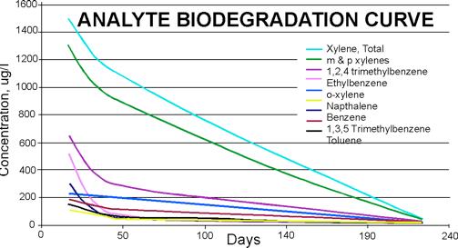 Soil and groundwater under an 8,000 square foot building and paved parking lot were contaminated with solvents. Remtech was engaged to manufacture a mobile treatment system ($65,000) to delivery its proprietary native bioremediation biostimulation acceleration technology - HC-2000 at multiple beverage distribution sites. This system is equipped with telemetry reporting and remote control. Five air/enzyme injection and vapor extraction wells were installed to enhance treatment under the building and parking lot. Site hydrogeology consisted of sandy CLAY and glacial till with a shallow groundwater (3 feet BLS). After 5.5 months of system operation, solvent groundwater analyte concentration reductions ranged from 95 to 99.9 percent.