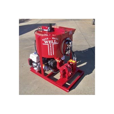 Compact Size: 30″ deep x 54″ wide x 49″ tall, weight 645 lbs. 10 gauge steel construction. 3″ channel iron base with 2″ angle iron legs. 41 gallon mixing hopper. Thorough mixing of the grout accomplished by the unique design for the mixing paddles and hopper baffles. Reliable 13 HP Honda OHV electric start engine. Variable speed, all hydraulic drive. 12 gallon hydraulic reservoir. Bowie outboard bearing rubber gear pump (25 GPM @ 125 PSI). Sandblasted, primed, and painted Rose-Wall red.