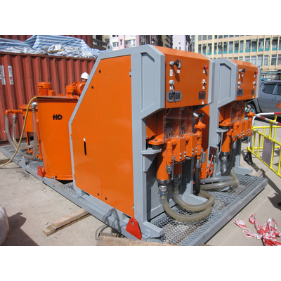 The GP160-100 pump is suitable for grouting water, cement, bentonite and find grained material. The special features of the GP160 includes high output flow and pressure, user friendly adjustable output pressure and volume control as well as convenient maintenance. Its robust and compact design makes it to be handle by small crane truck and fork lift easily and conveniently.