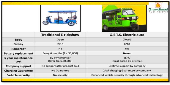 Growdiesel Electric Transportation System (G.E.T.S) is launching its own fleet of electric autos which will run on “renewable powered biofuel”. In this system, we will focus to establish a renewable fuel generation system, vehicle charging infrastructure and battery swapping infrastructure. This will be first of its kind project in India. In initial phases, we will be launching G.E.T.S. in Haryana, Rajasthan and Delhi. We already have stratergic tie-ups with prominent organisations who will be partnering with us.