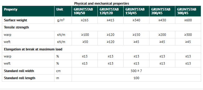 Woven geotextile «GRUNTSTAB» – is a material made by textile technology (weaving and knitting) of high modulus polyester yarns.