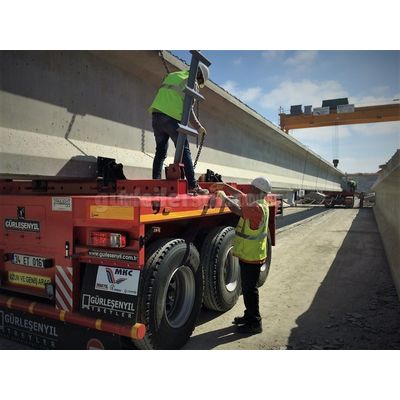 Dolly Transporter is a small trailer that can be coupled to a truck so as support a semi-trailer. The Dolly Trailers consists of a bogie equipped with a kingpin and separate fifth wheel to can move bridge beans with length up to 45 meters and weight up to 120 tons, to which the semi-trailer is coupled. GT Semitrailer offers high quality and competitive prices Dolly Semi Trailers from Turkey to Worldwide.