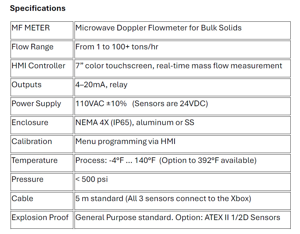 MF METER (Solids Flow) uses the principle of the Doppler effect.