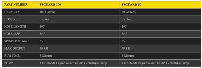 4 HP Honda Engine. Ace Centrifugal Pump. Low-Profile Full Drain Tru-Kleen Tank. 3/4″ Hose & Fire Nozzle. Clean Drain Valve. Available with or without Hose Reel.
