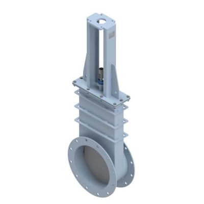 Guillotine dampers are typically used to shut off gas flow in ducts for maintenance or for bypass purposes. The powered feed-screw moves the blade along the body guides. A scale with a position indicator is foreseen to check the blade position. Dimensions, cross section and connection can be according to customer requirements.