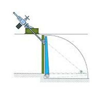 Hinged gate with the gyratory axle in the channel bottom. Gate with welded construction. Standard manufacturing materials are carbon steel and stainless steel. The gate can be adapted 100% to the customer requirements. Due to its construction it can be desgined for different water pressures and heights using several kinds of extensions. Actuators: handwheel, bevel gear, pneumatic double acting and single acting, electric actuator, hydraulic actuator.