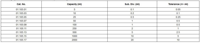 Amber- Religlas - Model Class A - 01.105 -H-Base Measuring Cylinders