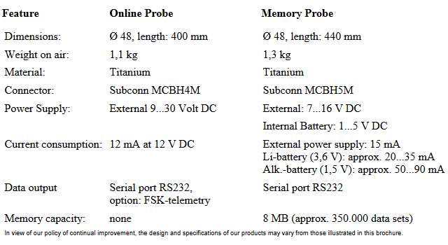 The CTD/O2 Fast Profiling Probe is available as direct reading probe or as memory probe for fast profiling or for monitoring. It is equipped with a fast response galvanic DO micro-sensor, a combined conductivity/temperature sensor with high accuracy and fast response and with a pressure sensor for depth measurements. The probe is lightweight and allows an easy handling for thein-situ profiling and for horizontal profiling with towed vehicles and from small boats for depths of up to 100 m.