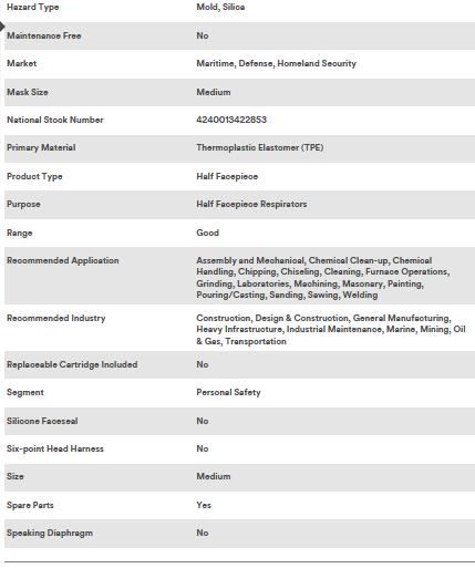 This half facepiece reusable respirator offers reliable and convenient respiratory protection and is suitable for many situations, helping provide protection against particulates and a wide variety of gases and vapors according to NIOSH approvals.