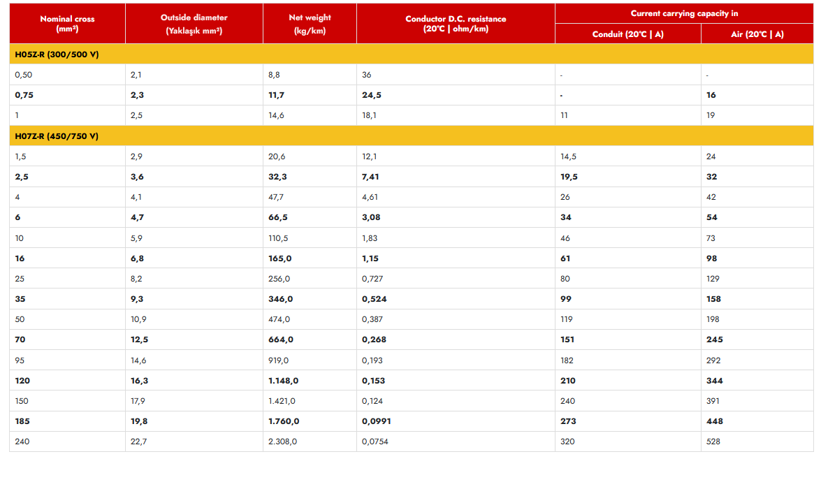 Hisar-Kablo - Model H05Z-R / H07Z-R -Halogen-Free Cable for Railway Systems