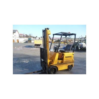 Hamech H15S 1.5T electric forklift, only 3012 hours, complete with rops cabin. Also complete with 220v single phase charger, lift height of 3.33m + lift capacity of 1500kgs. Ideal for inside work, factory/ story etc.