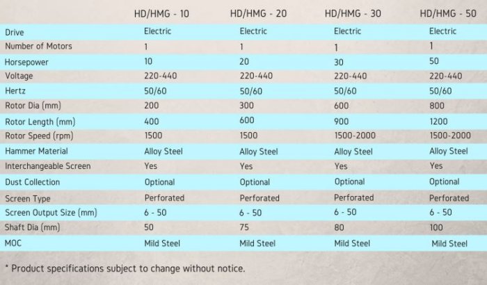 ERS - HD Hammer Mill is a crusher that can grind, pulverize, and crush a wide range of materials. This crusher employs a rain of hammer blows to shatter and disintegrate the material. Hammer mills produce a finish product size that is dependent upon..Opening in perforated screens or grate bars, Number, Size and type of hammers, Grinding plate settings and Rotor speed.