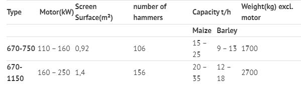 The Hammer Mills 670 series are very efficient mills and the result of our innovation and many years of experience. features a solid all-welded construction and has a number of benefits, which are mentioned below.