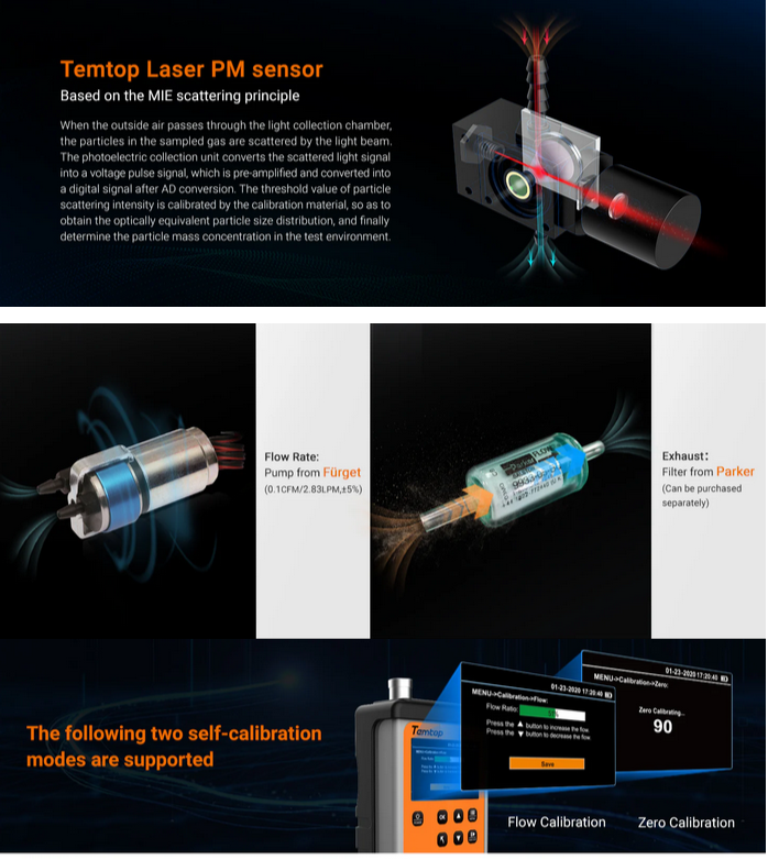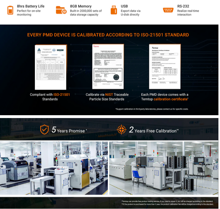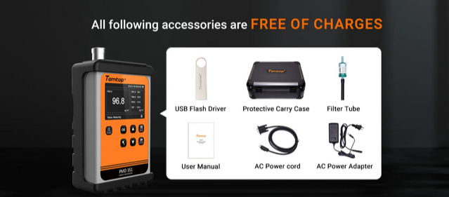 PMD 351 comes with a Temtop calibration certificate and combines with German Furgut pump, Parker filter and other worldwide suppliers to ensure accuracy and professionalism.