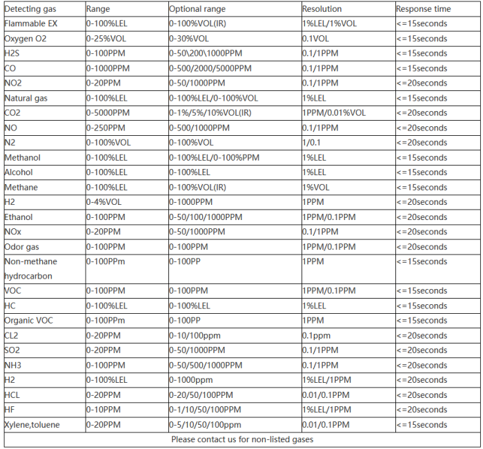 • Measured gases: Flammable or toxic gases