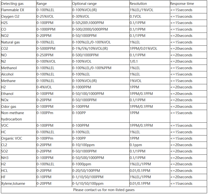 - Measured gases: Flammable or toxic gases