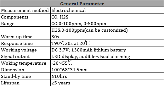 - Real‐time displaying gas concentration with LED.
