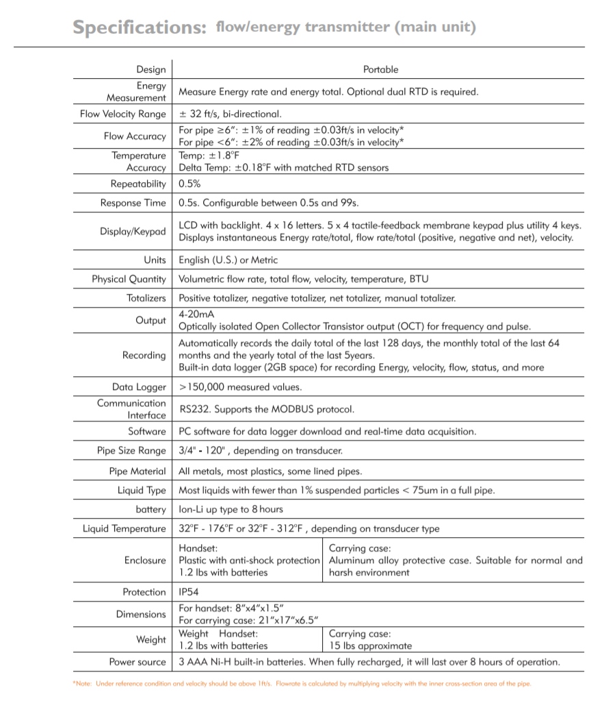 Spire MeteringModel RH40 -Handheld Ultrasonic Flow & BTU Meter
