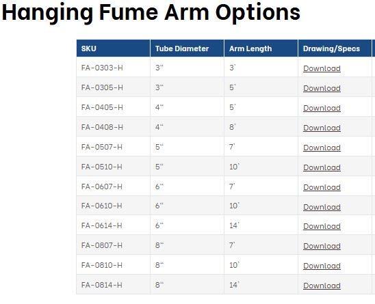 IAP Air Products Hanging Fume Arms are used for source capture in welding but can also be applied to extract any vapors, gases, or smoke. They are uniquely suited to purify the air in an industrial setting by extracting the fumes at the source from which they are created. Our hanging fume arms are used to create healthy and safe work environment by pulling fumes away from the welder`s breathing zone.